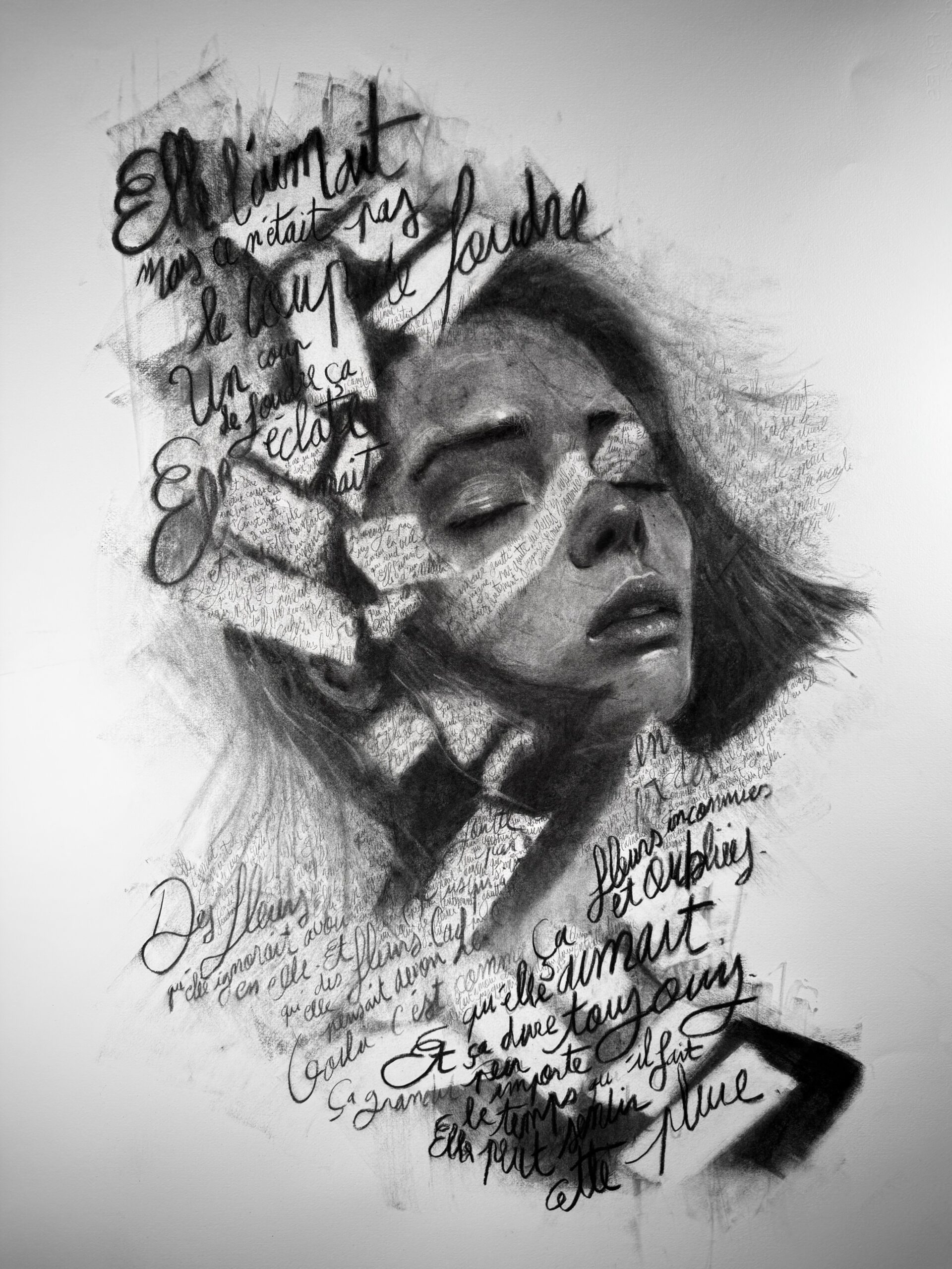 Fusain original de “La caresse de pluie”