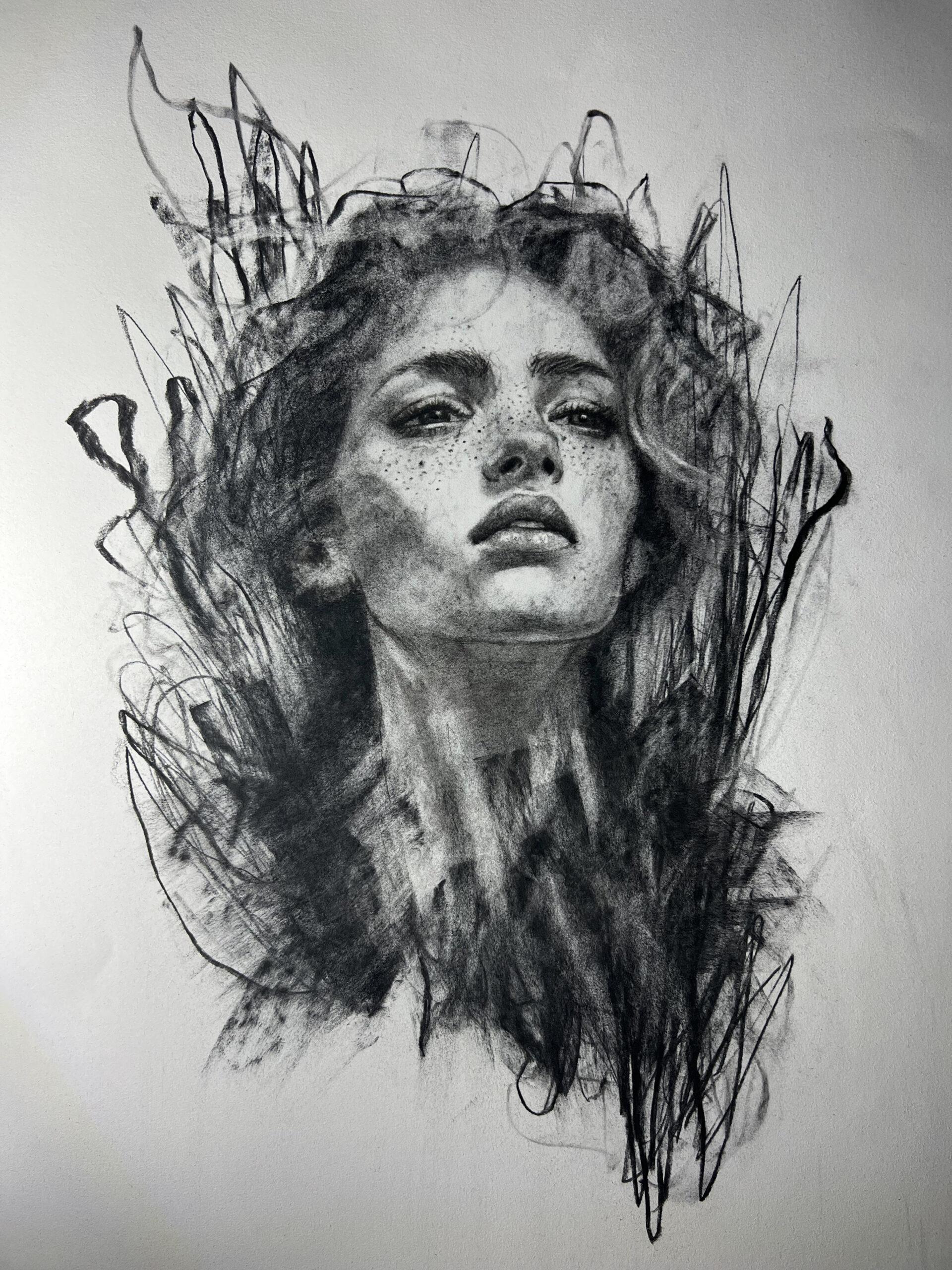 • Fusain sur papier Velin frangés, BFK Rives, qualité musée [50 x 65 cm]